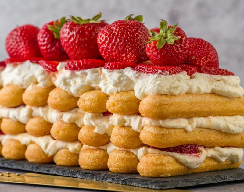 Tiramisu met aardbeien ruilt de koffie en cacao voor vers fruit en een lichtere smaak. Perfect voor warme dagen wanneer de klassieke versie te zwaar aanvoelt. Het principe blijft hetzelfde – lagen van gedrenkte biscuits en romige mascarpone – maar het resultaat is frisser en zomerser. En je hebt geen oven nodig, alleen een koelkast en een halfuur voorbereidingstijd.